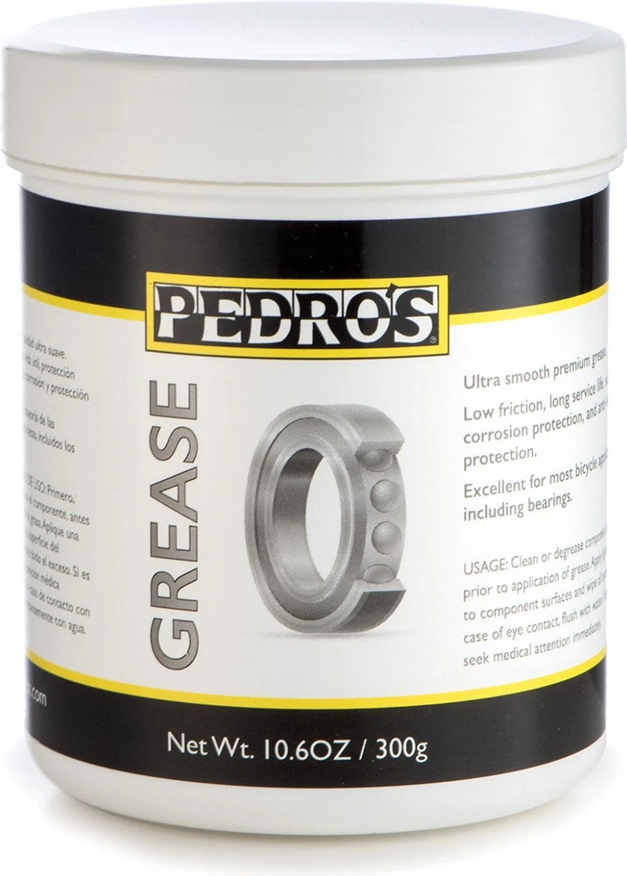 A premium, all-purpose, NLGI #2, extreme pressure, lithium complex bicycle grease. Pedro’s Grease is excellent for bearing applications, assembly tasks, threads, and component interfaces. Formulated to have an excellent dropping point, superior water resistance, and outstanding structural stability over a wide range of temperatures, Pedro’s Grease is the grease of choice for those that demand the best.