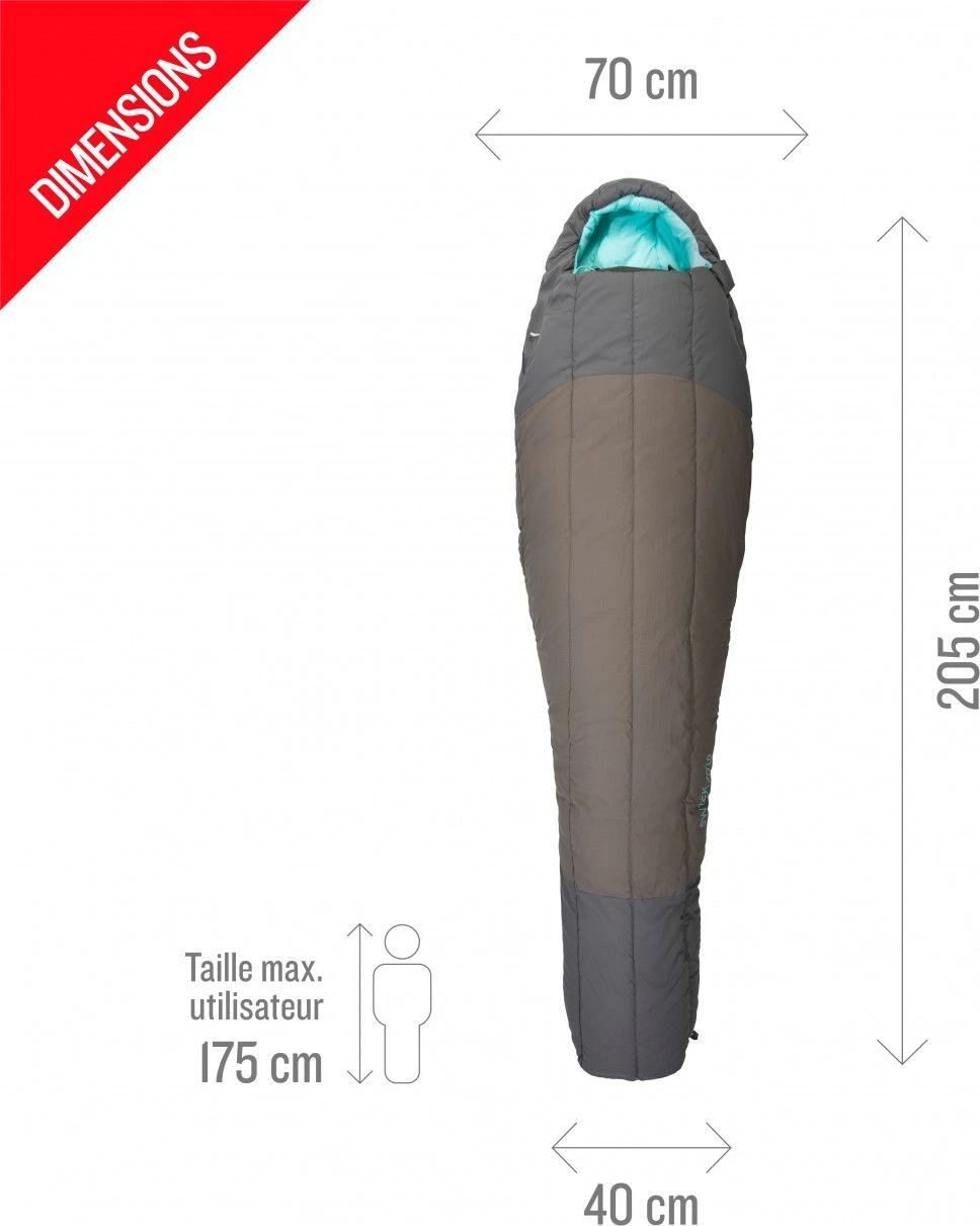 Lightweight and compact when folded in its compression bag, the LD SYNTEK 0° women’s mountain sleeping bag keeps you comfortably warm at night from zero degrees, thanks to its synthetic insulation. Its light and resistant ripstop material is water repellent, to prevent condensation or dew from soaking your bag. Once you’re cocooned in the stretch lining, warmth is kept in by the shoulder collar and adjustable, pre-shaped hood. Want to drink tea while admiring the view? Stick your right arm out through the BIVY WARM™ system and stay warm in your bag